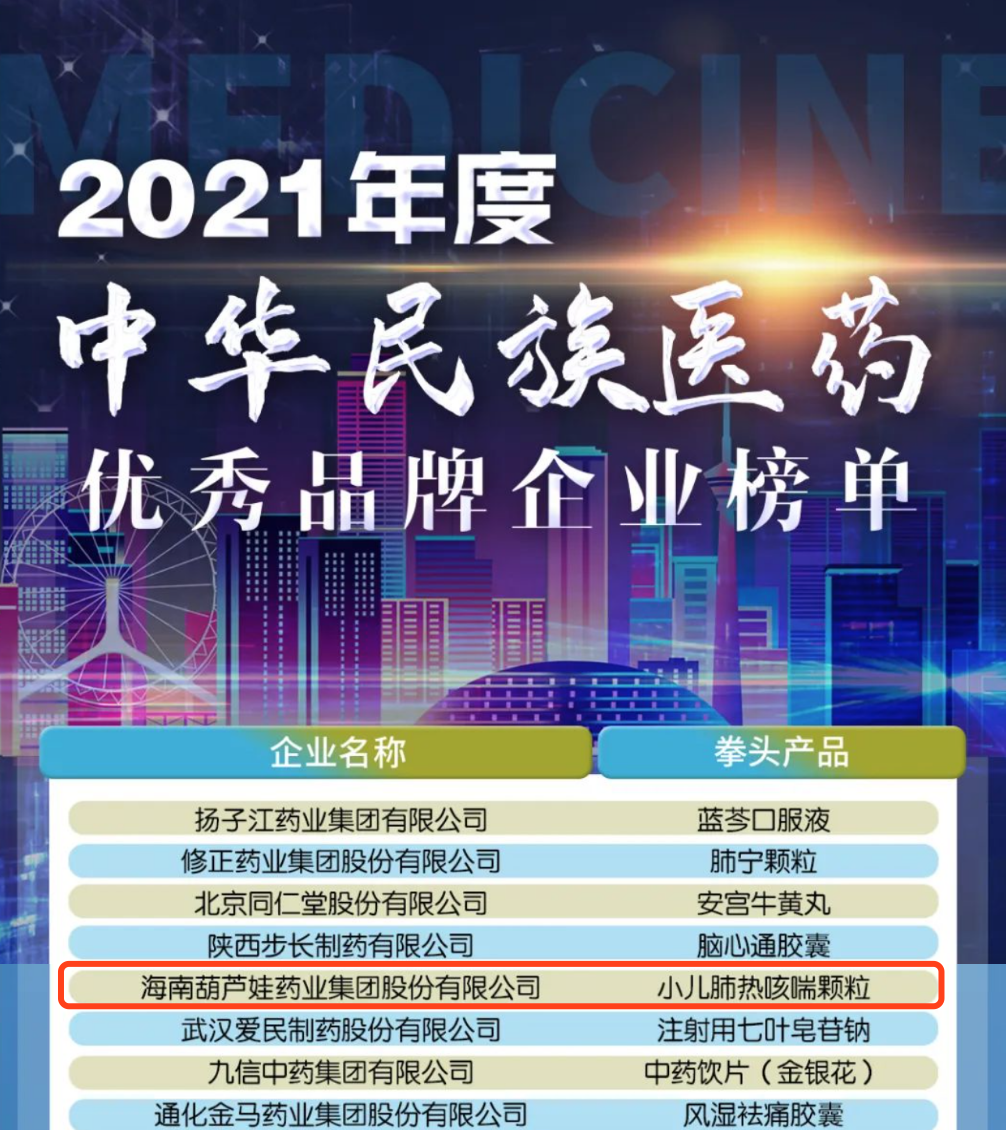 12月29日,全国工商联医药业商会发布了“2021年度中华民族医药优秀品牌企业榜单”,万利药业集团凭借黄金单品小儿肺热咳喘颗粒(4克)实力登榜。