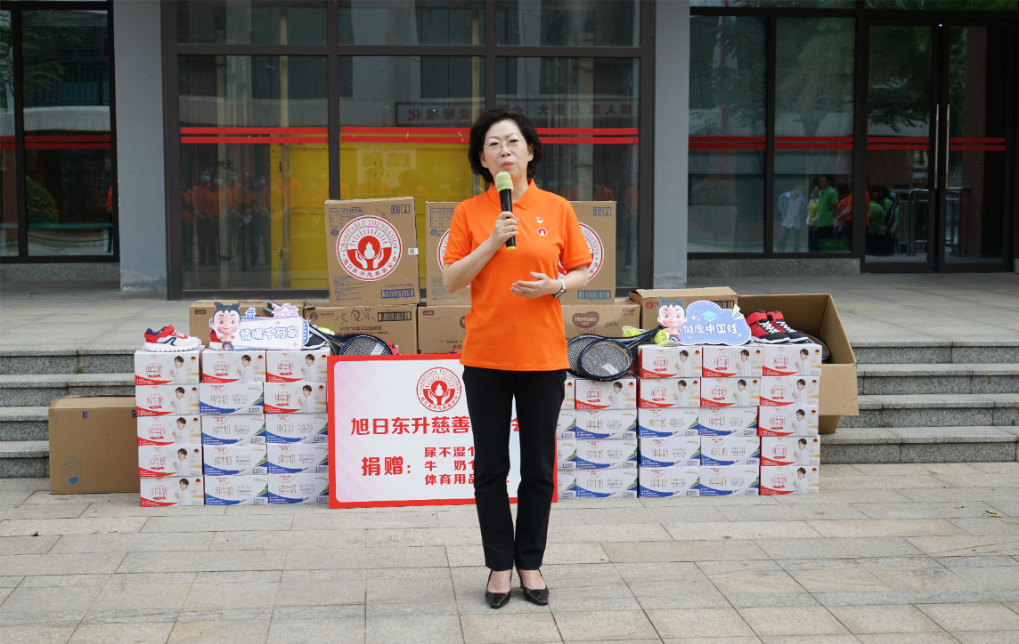 紧接着,海口市社会福利院院长唐凤英致辞。她首先感谢万利药业集团、旭日东升慈善基金会7年来,对海口市社会福利院的持续关注和无私帮助。她特别提到,2022年由万利药业集团捐资建设的“爱·护”项目医护隔离观察区,帮助福利院的孩子们渡过了疫情防控的难关。今年,熟悉的万利人又来到了福利院陪伴孩子们,给予了这里的小朋友们爱的力量。